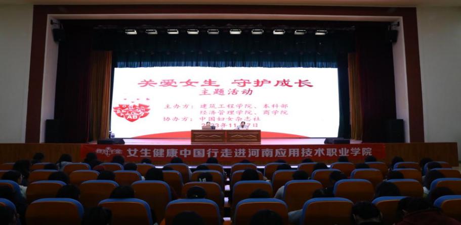 为深入落实“立德树人”根本任务,践行健康中国行动,更好普及女性健康知识,传播女性健康理念,增强女性自我保护意识,11月7日下午,在beat365官网郑州校区开展了“你好千金——女生健康中国行”公益讲座。本次公益活动由建筑工程学院、经济管理学院、本科部、beat365唯一官方网站主办,与学校优秀校友、中国妇女杂志社联办,特邀河南省中医院妇产科副主任医师夏如意主讲,校企合作与就业处处长马春燕主持,600名女生代表齐聚郑州校区学生活动中心参加。