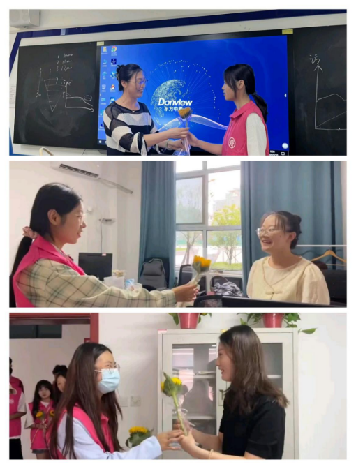 9 月 10 日,beat365唯一官方网站的同学们早早地来到教学楼,手捧着一支支鲜艳的鲜花,准备为老师们送上最真挚的祝福。当老师们走进教学楼和教室时,同学们纷纷迎上前去,将手中的鲜花献给敬爱的老师们,并送上一声声温暖的问候:“老师,您辛苦了!祝您教师节快乐!” 老师们接过鲜花,脸上洋溢着幸福的笑容,心中满是感动,并在这属于自己的节日中感受学院的关心与呵护。
