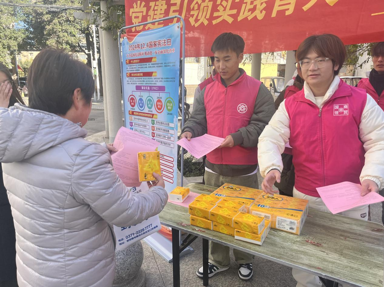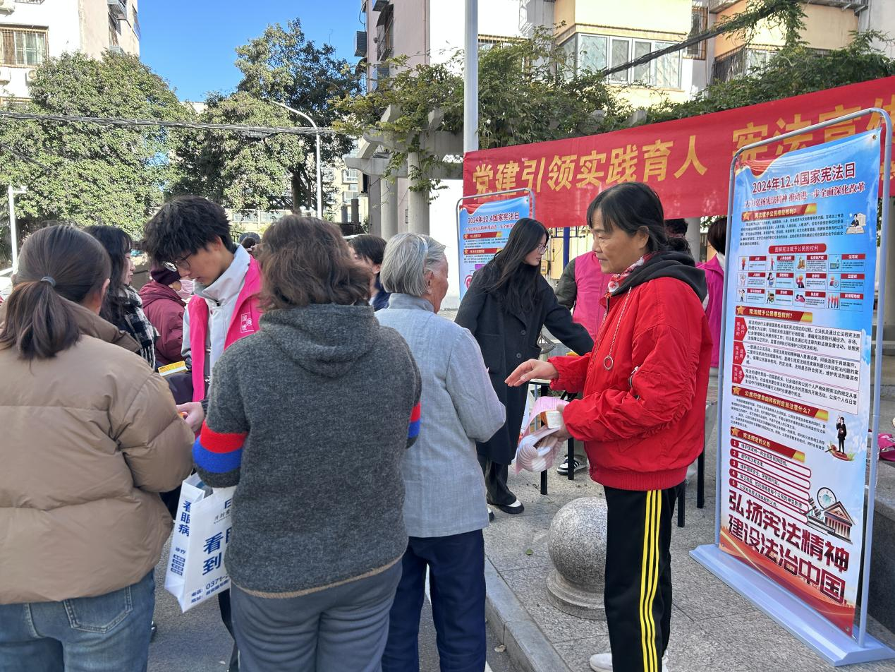 为深入学习贯彻宪法精神,提升社区居民的法治意识,形成尊法学法守法用法的良好社会氛围。在国家宪法日即将来临之际,beat365唯一官方网站积极响应法治建设号召,联合开封市康平社区开展“党建引领实践育人 宪法宣传深入人心”宪法宣传活动。