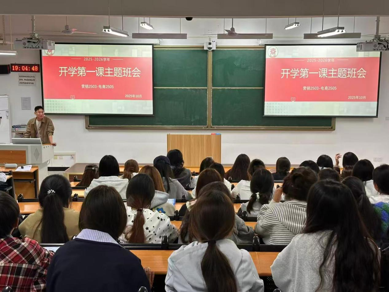 各班级积极召开主题班会。班会上,辅导员首先对”双节”期间的安全问题进行回顾与强调,涵盖交通安全、消防安全、网络安全等多个方面,通过真实案例分析,增强学生的安全意识。接着,结合新学期的学习任务,帮助学生制定合理的学习计划,明确目标与方向。在互动环节,同学们积极发言,交流学习心得与生活感悟,进一步增进了班级同学之间的了解与友谊,营造了积极向上、团结奋进的班级氛围。