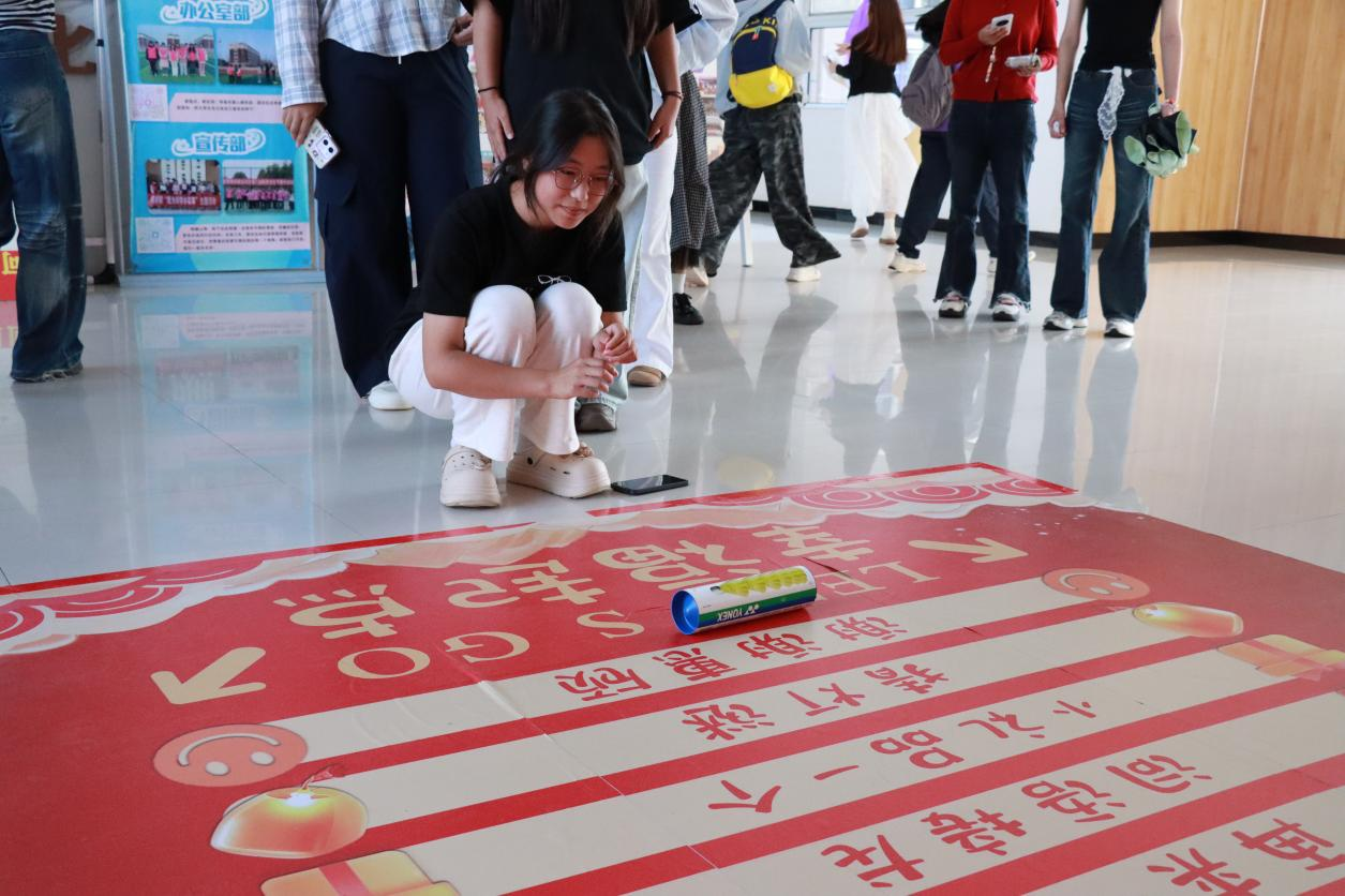 参与的师生们热情高涨,有人转到“词语接龙”,便与身边同学、老师接力作答,你来我往间满是默契;有人选中“猜灯谜”,对谜面认真思索,偶尔与身旁人轻声探讨,揭开谜底时的欢呼格外动人;还有人幸运触发“再来一次”,二次转动的期待让现场笑声不断。小小的圆筒,不仅串联起多样趣味,更打破了师生间的距离,让大家在互动中共享中秋之乐,感受学院的温暖。