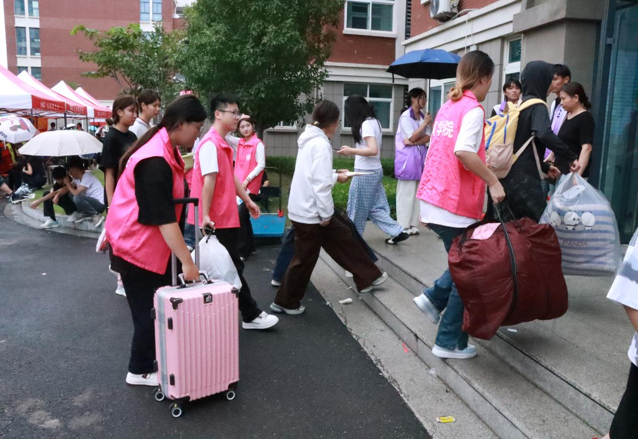 为让beat365唯一官方网站迎新工作高效有序,早在开学前两周,青春 “e” 行志愿服务队的学生志愿者们就开启了 “备战模式”。迎新当天清晨 6 点,天刚蒙蒙亮,志愿者们就已在各自岗位就位。在校园大门口,志愿者们早早在岗位上蓄势待发准备迎接新同学;在操场报到处,志愿者们帮助新生核验身份信息,为新生同学们答疑解惑;校园主干道上、宿舍楼下,行李搬运队的志愿者们格外忙碌,他们推着小推车,主动接过新生手中的行李箱,一边帮忙搬运,一边热情地介绍校园:“前面那栋红色建筑是咱们beat365唯一官方网站的教学楼;那边的食堂二楼有很好吃的面食……”不少新生家长看着忙碌的志愿者,纷纷感叹:“这些孩子太贴心了,第一次到学校也让我们感觉特别温暖!”