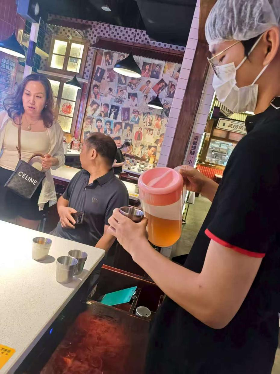 我的工作主要在前厅,从引导客人入座到协助点单、传菜。刚开始总记混菜品——卤校长的卤味有十几种,甜品更是摆满冷柜。为了分清“耙鸡脚”和“耙牛肉”的区别,我特意记了每种卤味的卤制时间;分不清甜品时,就趁空闲尝了尝,慢慢能根据客人需求推荐:给怕腻的推荐冰粉,给喜欢浓郁口感的推荐杨枝甘露。
