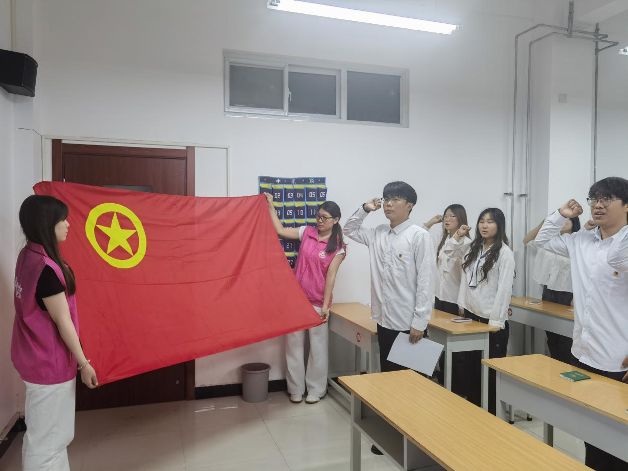 “我志愿加入中国共产主义青年团......”在领誓人带领下,新团员们高举右拳,面向团旗庄严宣誓。彰显着新团员们为共产主义事业奋斗的坚定决心。