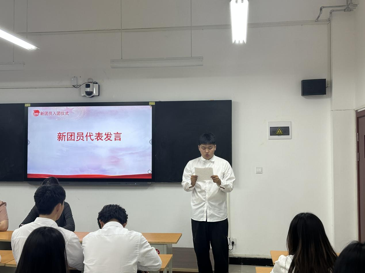 新团员代表高秀峰同志在发言中表示,将以团员标准严格要求自己,努力学习,积极进取,用实际行动践行入团誓言。
