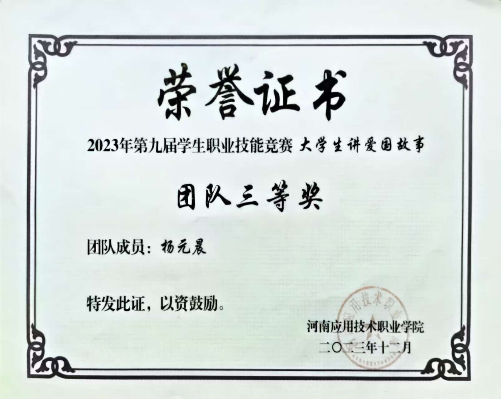 在校园内,她时常穿梭于课堂、社团活动室和志愿服务现场,始终以身兼力行为标尺,将当代青年的责任扛在肩头、担当融入日常,在每一次实践中诠释青春应有的模样。在班内,她担任团支书一职,始终以身作则,积极配合辅导员完成各项工作,定期组织主题团日活动,增强班级内凝聚力,提升同学们在思想上和行为上的觉悟;在校内,她担任青年宣传部部长和电子商务协会副社长一职,在任职青年宣传部的部长期间,她带领团队及时撰写新闻稿件并播报校内事件新闻、配合学校各项有关考试宣传、协助并成功执行“同升国旗 齐唱国歌”和“豫你相应正当时,挺膺担当向未来”等多项大型校园活动;而在任职电子商务协会副会长期间,在老师的指导下她带领团队参与多项省级技能竞赛,有效提升社员的动手实操及创新精神。